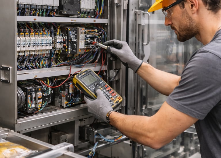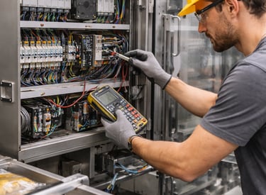 Manutenção preventiva e corretiva em sistemas elétricos e automatizados, reduzindo paradas não programadas e aumentando a vida útil dos equipamentos.