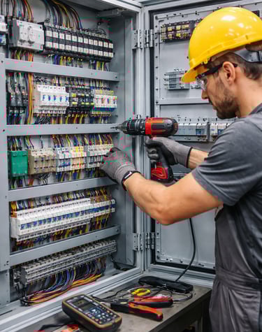 Montagem, reorganização e adequação de painéis elétricos e de comando, garantindo funcionamento seguro, padronização e facilidade de manutenção.